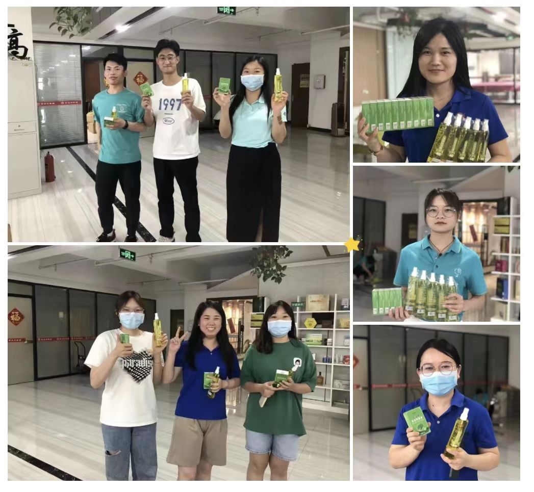 接过花露水、风油精等防暑用品时,